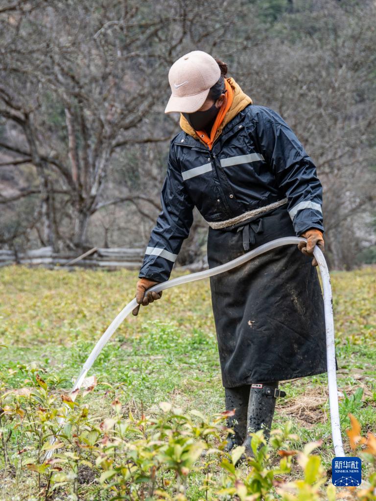 在西藏林芝市波密縣藏芝星農(nóng)業(yè)科技有限公司茶園里,茶田管護(hù)員正忙著給茶樹澆水除草,門口的項(xiàng)目牌上展示著茶樹品種、生長周期和管護(hù)注意事項(xiàng)?!安鑸@讓我們?cè)黾恿诵碌氖杖?。”看著現(xiàn)代化的連片茶田,在此工作的古鄉(xiāng)雪瓦卡村32歲的村民索朗措姆由衷感慨。