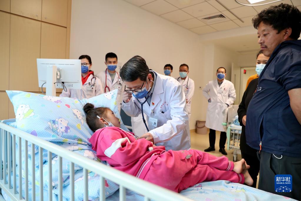 11月25日,在福建省兒童醫(yī)院病房,醫(yī)生在檢查先心病患兒次仁擁措的康復情況。新華社記者 姜克紅 攝