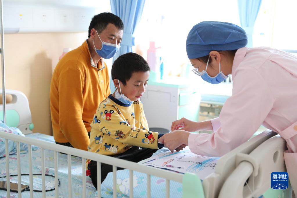 11月25日,在福建省兒童醫(yī)院病房,護士在為康復中的先心病患兒次仁扎西進行日常護理。新華社記者 姜克紅 攝