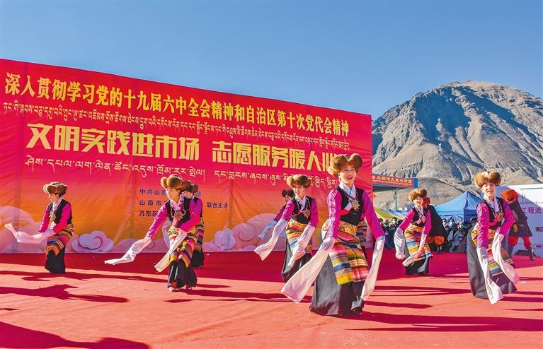 在推動物資交易的同時,山南市還借助超高的人氣,把宣講會、新時代文明實踐活動等搬到現(xiàn)場,讓群眾在購銷的同時,積極學(xué)習(xí)黨的十九屆六中全會精神和自治區(qū)第十次黨代會精神,享受義診、政策咨詢等志愿服務(wù)。