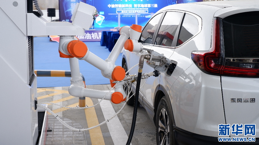 12月29日,加油機器人為汽車加油。伍世偉 攝(新華網(wǎng) 發(fā))