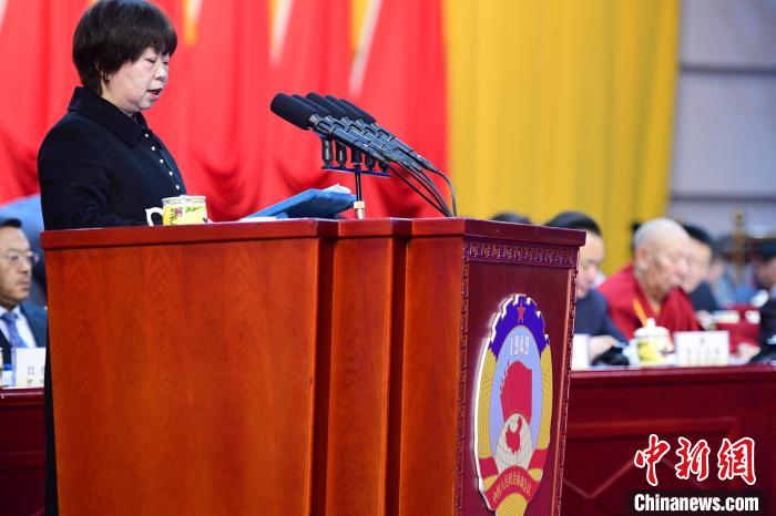 西藏政協(xié)農(nóng)業(yè)界委員、西藏自治區(qū)農(nóng)業(yè)技術(shù)推廣服務(wù)中心站長(zhǎng)陳俐發(fā)言。貢嘎來(lái)松 攝