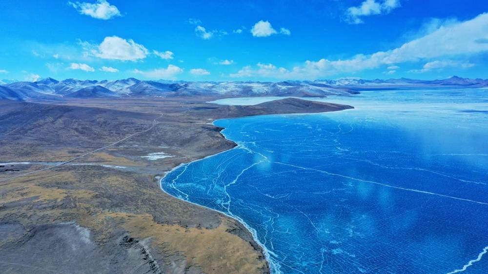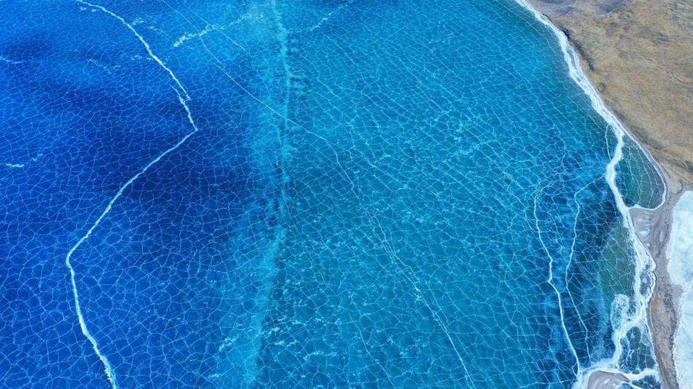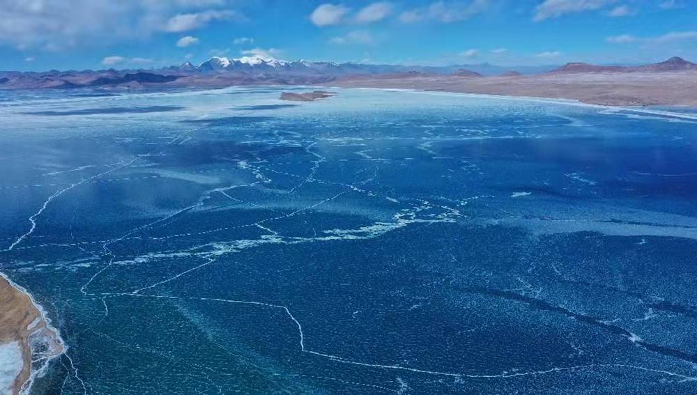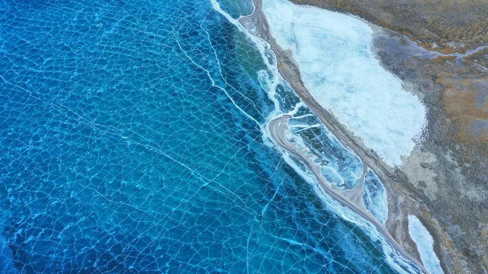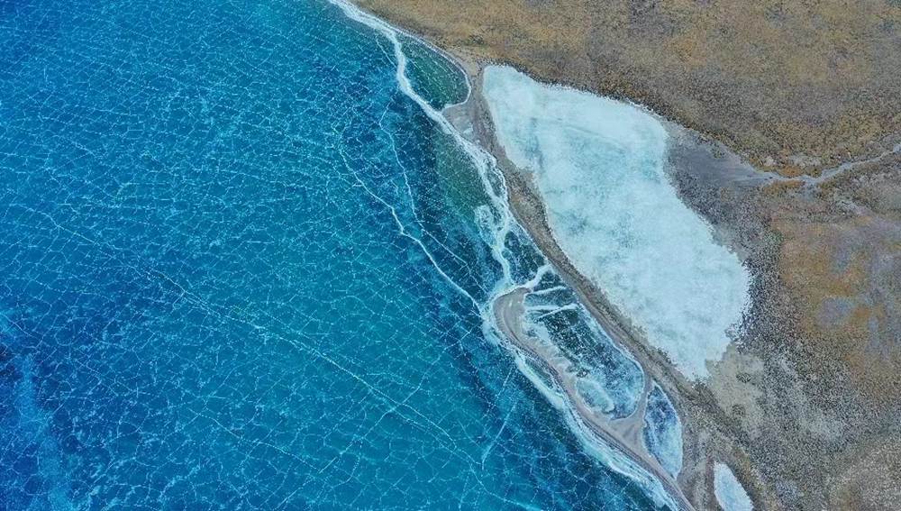 位于西藏山南市洛扎縣和浪卡子縣交界處的普莫雍錯(cuò),是喜馬拉雅山脈間的一個(gè)咸水湖,湖面海拔5070m。冬季的普莫雍錯(cuò)湖面會(huì)結(jié)冰,冰面通透可見湖底,在陽光的照射下,呈現(xiàn)出動(dòng)人心魄的藍(lán)。