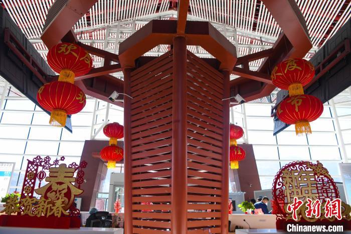圖為拉薩貢嘎機(jī)場(chǎng)大廳年味裝扮迎接春節(jié)。貢嘎來松 攝