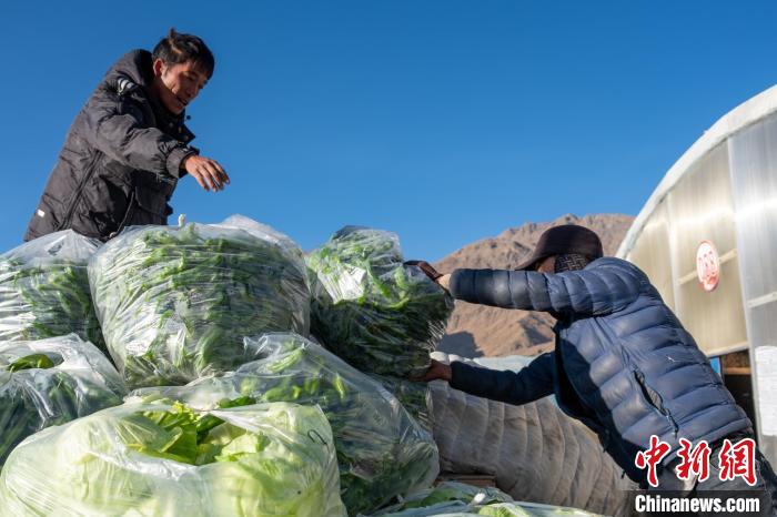 圖為當?shù)剞r(nóng)牧民轉(zhuǎn)運剛采摘的大棚蔬菜前往日喀則市區(qū)。江飛波 攝