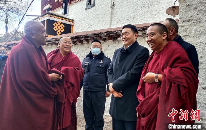 1月28日,調(diào)研組一行先后來到哲蚌寺、城關(guān)區(qū)雪堆白文教集團(tuán)、城關(guān)區(qū)河壩林社區(qū)、色拉寺,看望慰問基層統(tǒng)戰(zhàn)干部、寺管會(huì)干部、駐寺派出所干警、消防和部隊(duì)官兵、寺廟僧人以及民營(yíng)經(jīng)濟(jì)人士等,并以現(xiàn)場(chǎng)察看、聽取匯報(bào)、座談交流的形式,詳細(xì)了解寺廟管理、僧尼教育、維護(hù)穩(wěn)定、消防安全和民族團(tuán)結(jié)進(jìn)步創(chuàng)建等方面的工作。