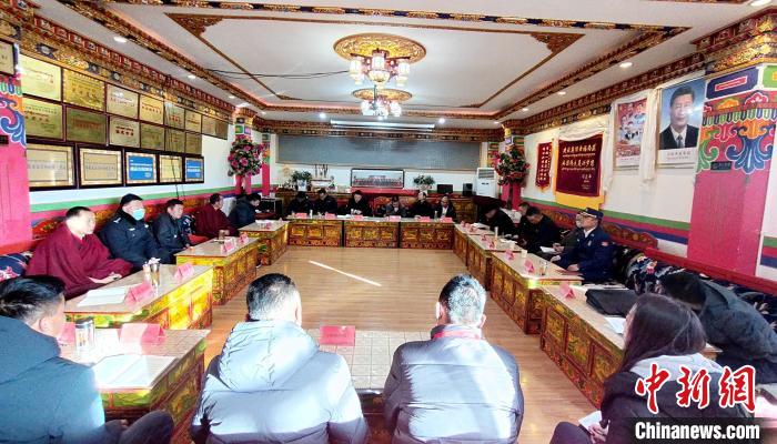 嘎瑪澤登與寺廟僧人、駐寺干部等座談?!∝暽@?攝