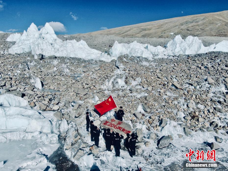 圖為普瑪江塘邊境派出所移民管理警察在邊境冰川巡邏。 徐道超 攝