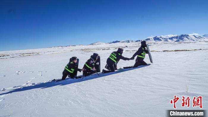 又經(jīng)過2個多小時的艱難跋涉,巡邏隊終于抵達(dá)目的地點位??辈臁㈢P雪、描紅……一個環(huán)節(jié)也不能出錯,界碑就是生命,就是戍邊人的信仰。
