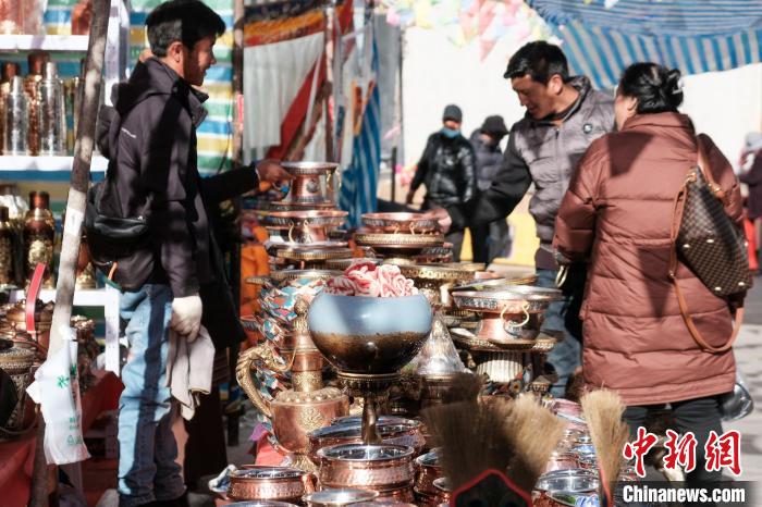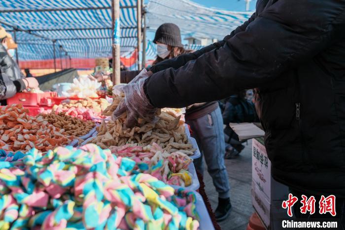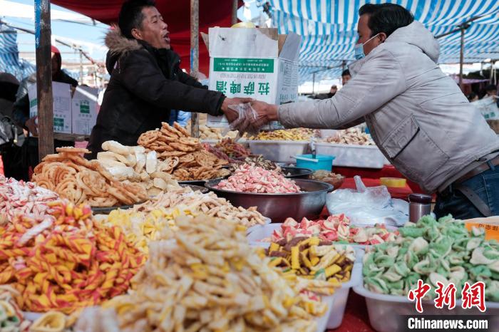 以農(nóng)耕為主的日喀則有“西藏糧倉”之稱,為不耽誤農(nóng)事,包括日喀則在內(nèi)的農(nóng)耕區(qū)習慣提前一個月,在藏歷十二月慶祝新年,被稱為日喀則農(nóng)事新年。1月31日是春節(jié)除夕,恰逢日喀則農(nóng)事新年的“古突夜”,小新在日喀則年貨市場看到,該市場內(nèi)的“卡塞”、青稞苗、“羅薩美朵”、牦牛肉干、酥油、糖果等各類藏式年貨琳瑯滿目,大家也抓緊時間置辦,為晚上熱熱鬧鬧過“古突”做最后的準備。
