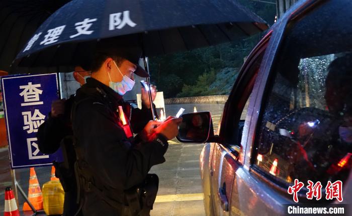 達(dá)國(guó)大橋檢查點(diǎn)民警正在檢查過往車輛。冉文娟 攝
