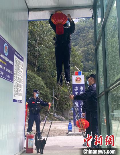 春節(jié)到來,民警把達(dá)國(guó)大橋檢查點(diǎn)裝扮一新。受訪者供圖