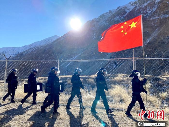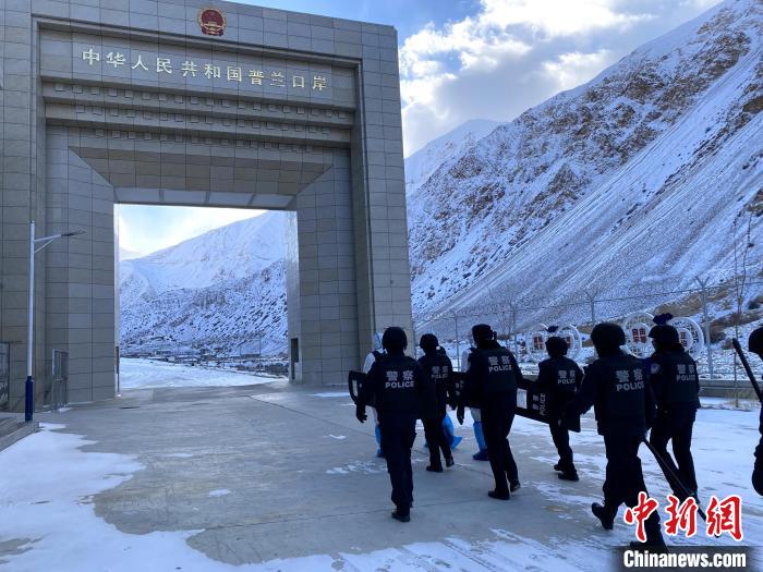 圖為普蘭邊檢站民警在邊境國(guó)門巡邏?!「駸帷z