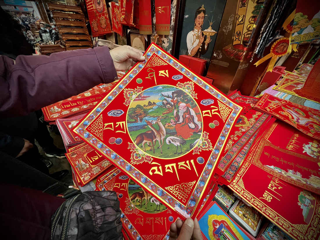 大紅的春聯(lián)、精致的切瑪盒、象征吉祥的羊頭、五彩的羅薩梅朵……藏歷新年上應(yīng)景的物件被一一擺上了街頭。雖然春節(jié)剛過(guò)去,但古城拉薩的大街小巷里年味仍然濃厚,再過(guò)不久,2022年3月3日,雪域高原將迎來(lái)藏歷水虎新年。