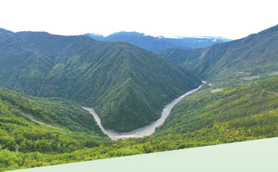 雅魯藏布江在林芝市內(nèi)轉(zhuǎn)彎向南,滾滾江水在高聳的喜馬拉雅山脈上穿鑿出一個“缺口”。在米林縣、墨脫縣境內(nèi),四五百公里的長度卻有著3000多米的高度落差,在這里形成了又深又長的雅魯藏布大峽谷。這一區(qū)域比同緯度其他區(qū)域氣候更濕潤,形成了茂密的原始森林。