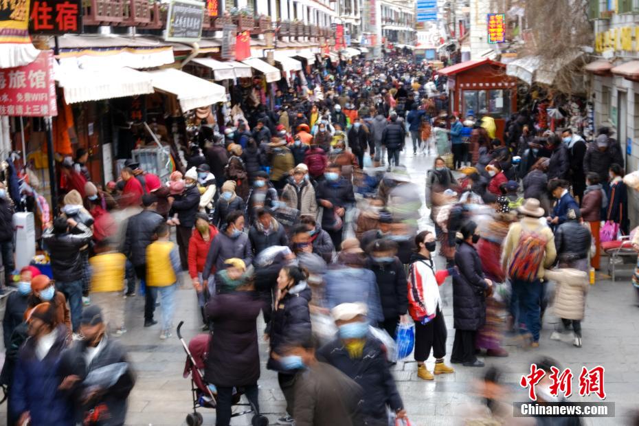拉薩小昭寺附近采購年貨的民眾絡(luò)繹不絕。江飛波 攝