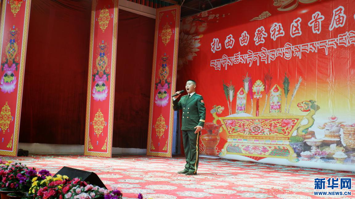 扎西曲登社區(qū)首屆藏歷新年晚會(huì)上的個(gè)人獨(dú)唱節(jié)目《陽(yáng)光路上》(2月26日攝)。新華網(wǎng) 殷小燕 攝