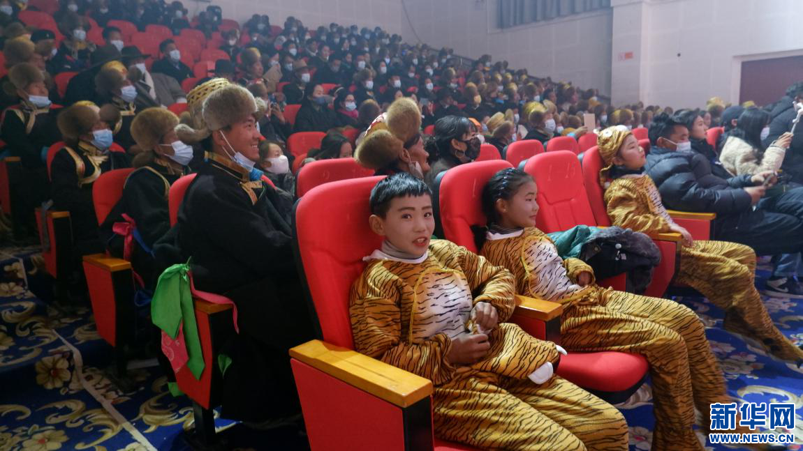 扎西曲登社區(qū)首屆藏歷新年晚會(huì)上,社區(qū)群眾在觀看節(jié)目(2月26日攝)。新華網(wǎng) 殷小燕攝