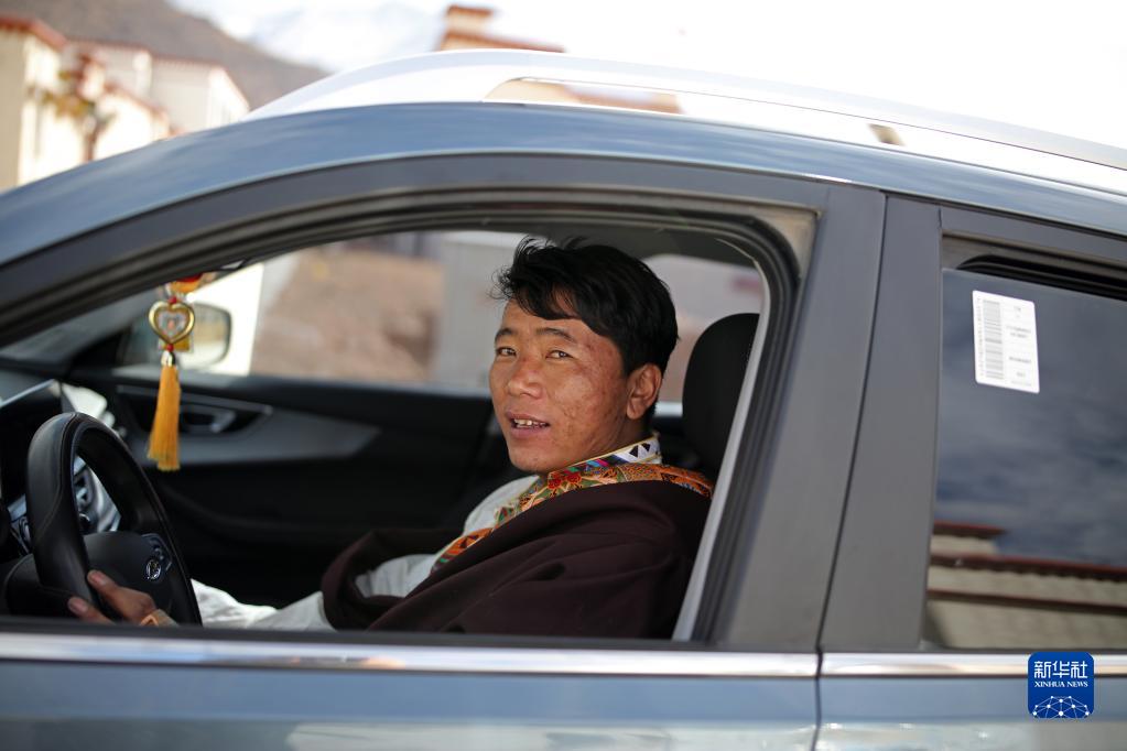 搬遷牧民叢美開(kāi)著自己新買(mǎi)的汽車(chē)(2月28日攝)。新華社記者 姜帆 攝