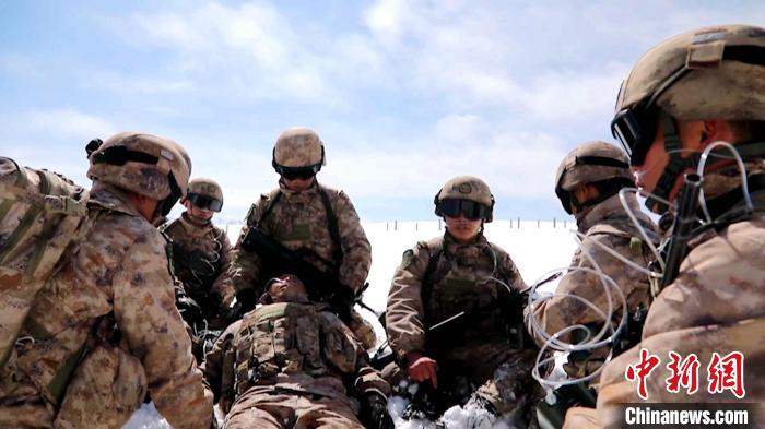 在空曠的雪地里寒風(fēng)呼嘯,官兵們?cè)诹阆?8攝氏度的極寒條件下,以跪地爬行的方式移步前行,途中景家俊出現(xiàn)高反缺氧。