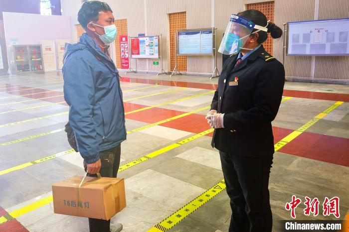 圖為羅布在林芝火車站引導(dǎo)乘客。國鐵青藏集團(tuán)有限公司 供圖