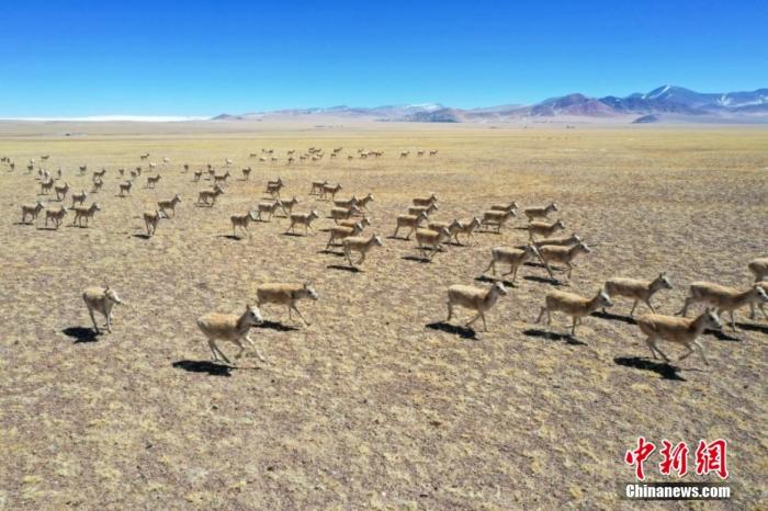 近日,西藏阿里地區(qū)改則縣境內(nèi)出現(xiàn)近萬頭藏羚羊聚集現(xiàn)象?!爸袊吘骋吧镄l(wèi)士”榮譽稱號獲得者強巴次仁向中新社記者介紹,這與保護(hù)成效、生態(tài)向好、棲息地安全等分不開。