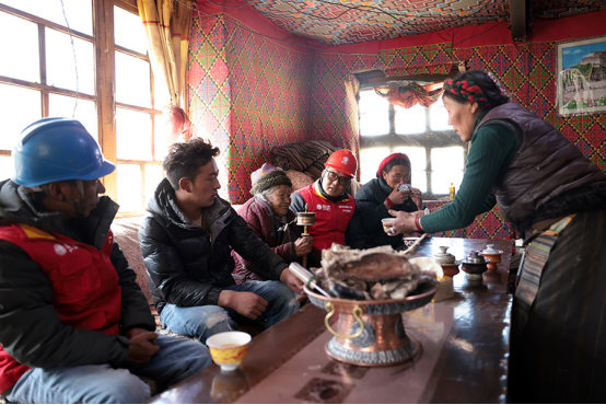 帳篷里大家圍坐在一起,喝著熱氣騰騰的酥油茶,熱情的讓卓不停地向服務(wù)隊(duì)隊(duì)員獻(xiàn)上脆脆的風(fēng)干肉,有說有笑。讓卓85歲的老奶奶瑪姆也湊起熱鬧聊家常,即使聽力有些下降,但聊到用電給生活帶來的改變時(shí),老奶奶笑著用流利的藏語說“黨的政策好?。 ?/p>