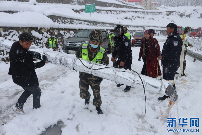 武警第二機動總隊某支隊官兵正在清理雪崩積雪(4月4日攝)。新華社發(fā)(何欽攝)