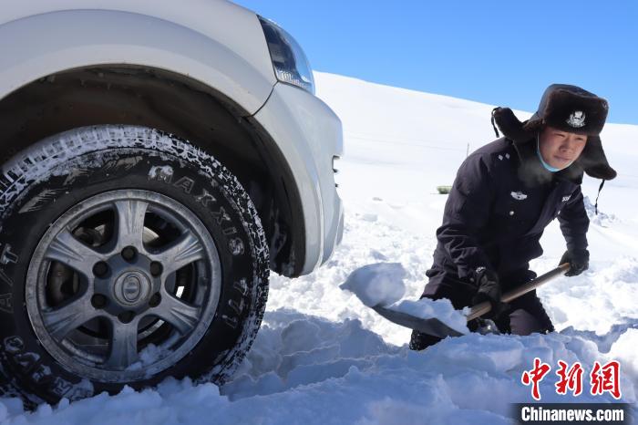 圖為亞熱邊境派出所民警救助被困車輛。日喀則邊境管理支隊 攝