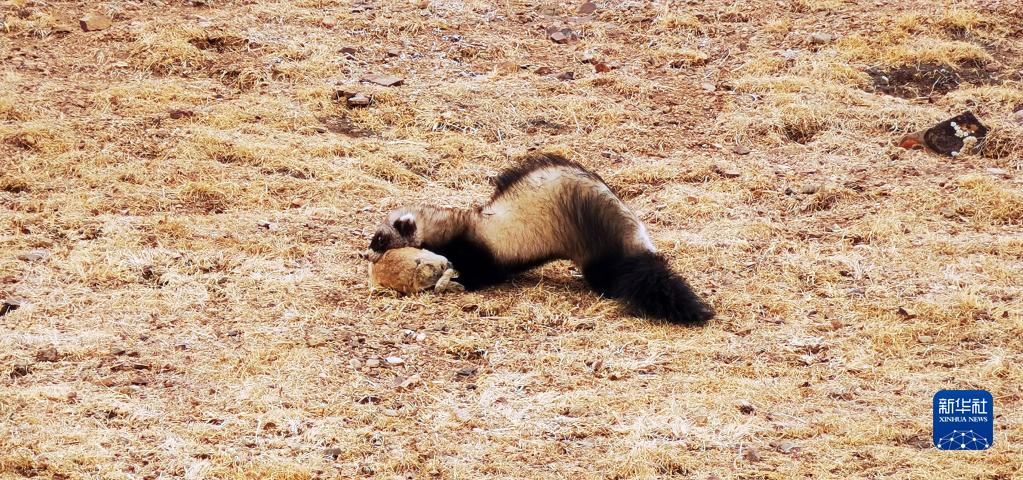 這是西藏那曲班戈縣拍攝的一只艾鼬捕食鼠兔的場景(手機(jī)照片,4月13日攝)。新華社記者 沈虹冰 攝