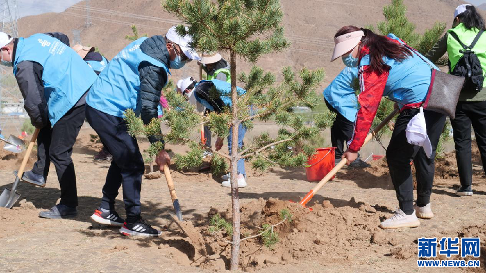 圖為植樹活動(dòng)現(xiàn)場(chǎng)(4月16日攝)。新華網(wǎng)發(fā) 貢桑央吉(實(shí)習(xí)生)攝