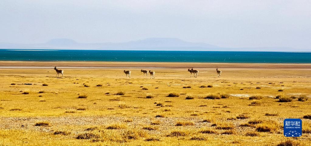 一群藏原羚在位于西藏自治區(qū)那曲市的色林錯(cuò)湖邊徜徉(2022年4月13日攝,手機(jī)照片)。新華社記者 沈虹冰 攝
