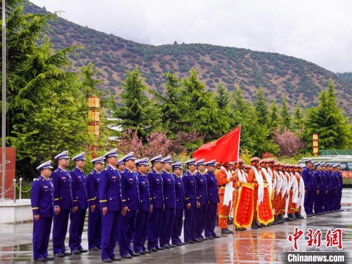 林芝市森林消防支隊營區(qū)人員列隊歡迎駐防分隊歸來。李國燾 攝