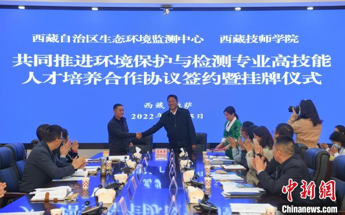 25日,西藏自治區(qū)生態(tài)環(huán)境監(jiān)測(cè)中心與西藏技師學(xué)院《共同開(kāi)展環(huán)境保護(hù)與檢測(cè)專業(yè)高技能人才培養(yǎng)合作協(xié)議》簽約儀式暨“環(huán)境監(jiān)測(cè)人才孵化基地”揭牌儀式在拉薩舉行。