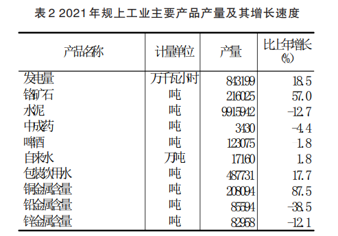 全年規(guī)模以上工業(yè)企業(yè)水泥產(chǎn)量991.59萬噸,比上年下降12.7%;鉻礦石21.60萬噸,增長57.0%;中成藥(藏醫(yī)藥)3430噸,下降4.4%;自來水1.72萬噸,增長1.8%;發(fā)電量84.32億千瓦時(shí),增長18.5%;啤酒12.31萬噸,下降1.8%;包裝飲用水48.77萬噸,增長17.7%。