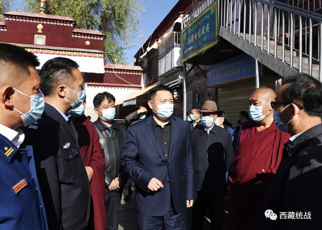 在小昭寺、色拉寺,嘎瑪澤登指出,當前國際疫情仍在泛濫,國內(nèi)疫情防控形勢異常嚴峻,西藏外防輸入的壓力陡增,寺廟作為西藏防疫的重點部位,必須采取嚴格的防控措施。嘎瑪澤登在寺廟入口處察看測溫掃碼,并實地檢查各項防疫措施落實情況,詳細了解僧人疫苗接種、核酸篩查等工作開展情況。在色拉寺管委會,嘎瑪澤登座談聽取拉薩市宗教領域和色拉寺疫情防控情況匯報,指出拉薩是全區(qū)首善之地,在疫情防控方面首當其沖,宗教領域是疫情防控的重點領域,萬不可疏忽大意。嘎瑪澤登強調(diào),要進一步提高思想認識,壓實防控責任,落實落細防控措施,抓緊抓實防控工作,針對存在問題漏洞,狠抓整改強化措施,堅決守住宗教領域不發(fā)生疫情底線。
