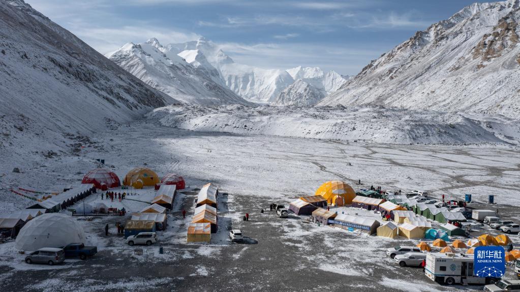 這是珠峰登山大本營(5月1日攝,無人機(jī)照片)。新華社記者 孫非 攝