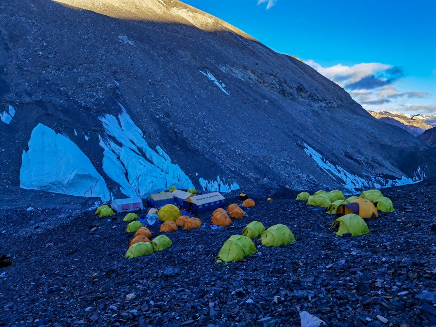 這是冰川與污染物小組位于海拔5800米的科考營(yíng)地(5月6日攝,手機(jī)照片)。新華社發(fā)(受訪者供圖)
