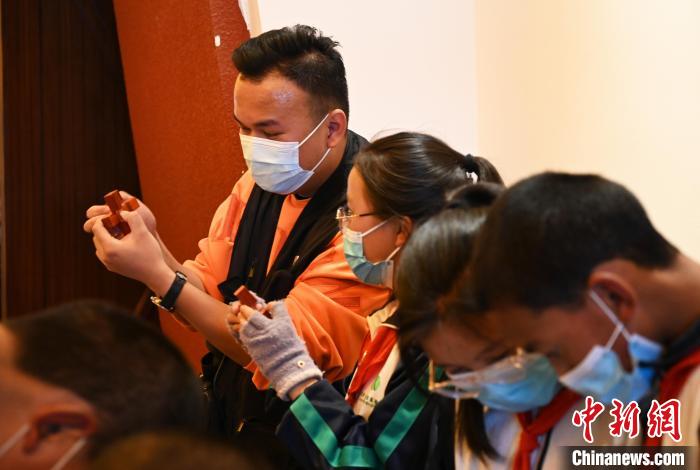 此次展覽的首場講解由拉薩市北京實(shí)驗(yàn)中學(xué)學(xué)生承擔(dān)?;顒舆€邀請了在校學(xué)生體驗(yàn)了古建榫卯組裝、北京古城池拼圖等社教活動。