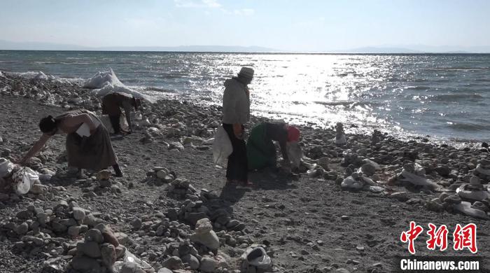 圖為牧民在瑪旁雍錯(cuò)自然保護(hù)區(qū)內(nèi)撿拾垃圾。貢桑拉姆 攝