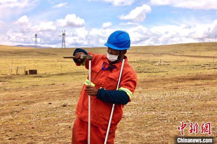 “這里是當(dāng)年建設(shè)青藏聯(lián)網(wǎng)工程時(shí)的凍土施工攻堅(jiān)帶,這樣的地方,也只有靠冬季受凍時(shí)施工。春夏時(shí)節(jié),便成了泥沼地?!?501號(hào)塔位年檢工作現(xiàn)場(chǎng)負(fù)責(zé)人董建明一邊推車(chē),一邊介紹。