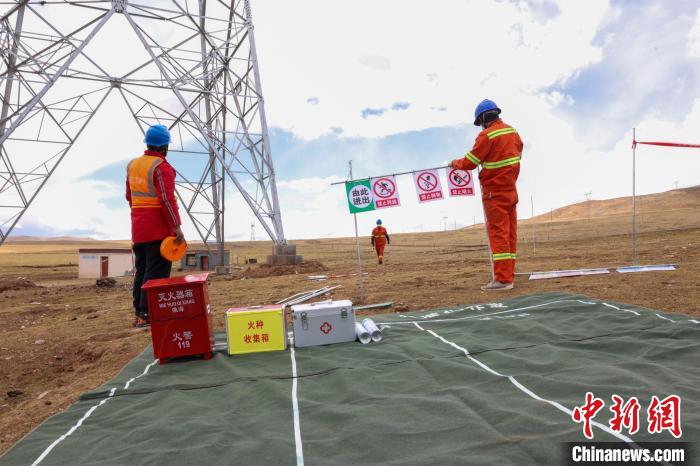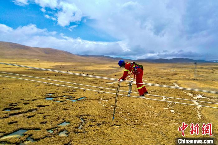 青藏聯(lián)網(wǎng)工程年檢工作人員正在進(jìn)行走線?!¢Z昱翰 攝