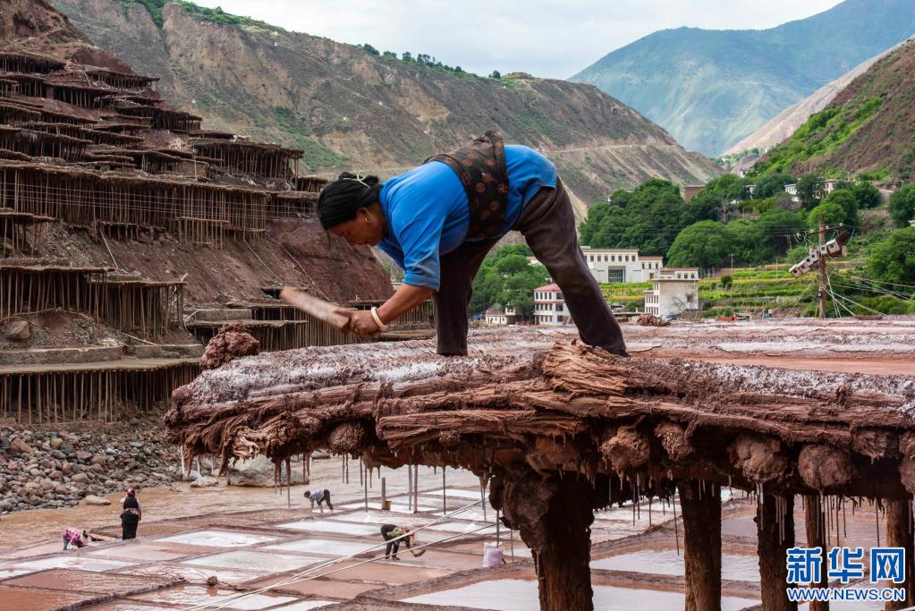 加達(dá)村村民在古鹽田里勞作(5月26日攝)。新華社記者 陳尚才 攝