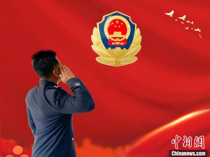 圖為尼瑪扎西向警徽敬禮?!∪湛t市公安局禁毒支隊(duì)供圖