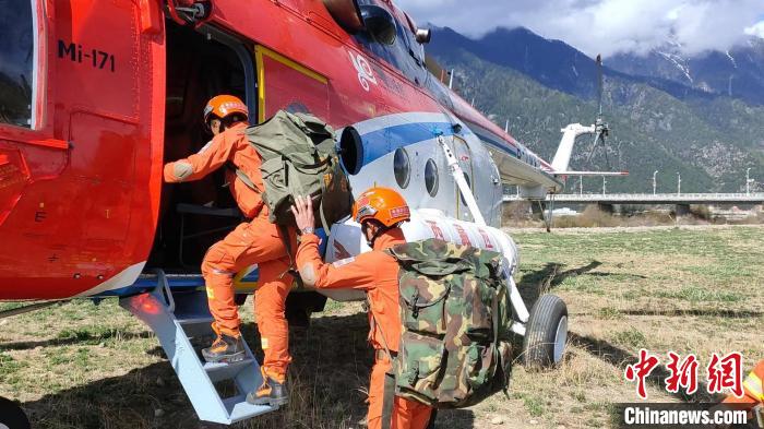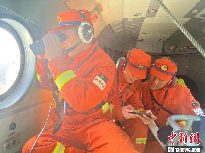 圖為消防救援人員乘直升機進行空中巡護。西藏森林消防總隊林芝支隊 供圖