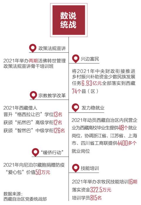西藏自治區(qū)黨委統(tǒng)戰(zhàn)部介紹,2022年,全區(qū)統(tǒng)戰(zhàn)系統(tǒng)以全力服務(wù)迎接黨的二十大為主線,持續(xù)深化反分裂斗爭(zhēng),確保國(guó)家安全和長(zhǎng)治久安。加大活佛轉(zhuǎn)世政策法規(guī)宣傳宣講力度,牢牢掌握反分裂斗爭(zhēng)全局主動(dòng)性。在鑄牢中華民族共同體意識(shí)上見(jiàn)行見(jiàn)效,有效抵御各種極端、分裂思想的滲透,堅(jiān)決防范民族領(lǐng)域重大風(fēng)險(xiǎn)隱患。