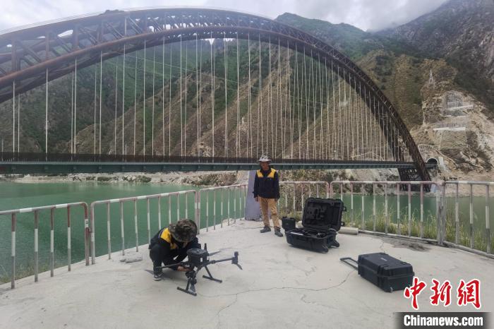 圖為拉林鐵路工作人員操作無人機(jī)進(jìn)行巡檢?!±痛稳省z