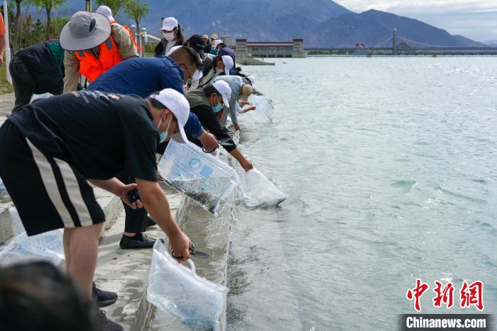 本次放流6種西藏特有魚類,總計215萬尾?!〗w波 攝