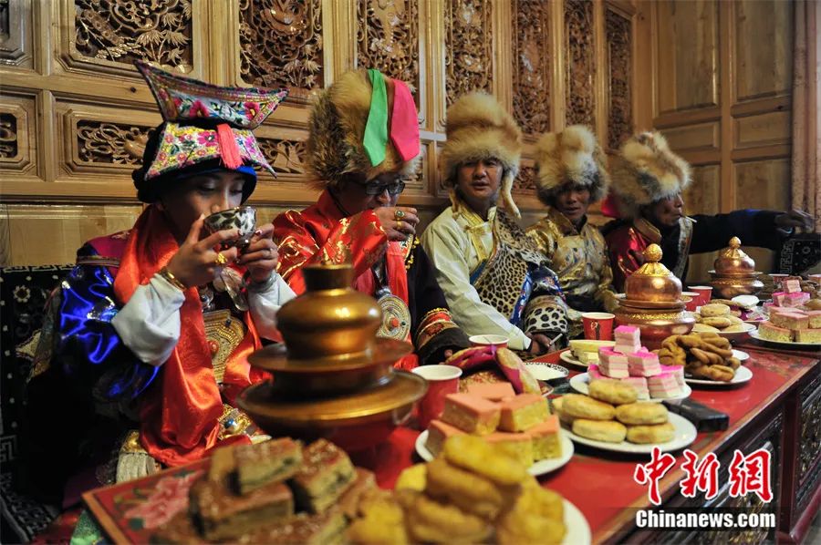 趙國棟:藏民族的熱情好客在飲茶中即可體現(xiàn)。家中來客,主人要請客人在主位坐下。倒茶前要先清潔茶具,倒茶時(shí)要正對著客人,雙手捧著茶壺慢慢注入茶湯。
