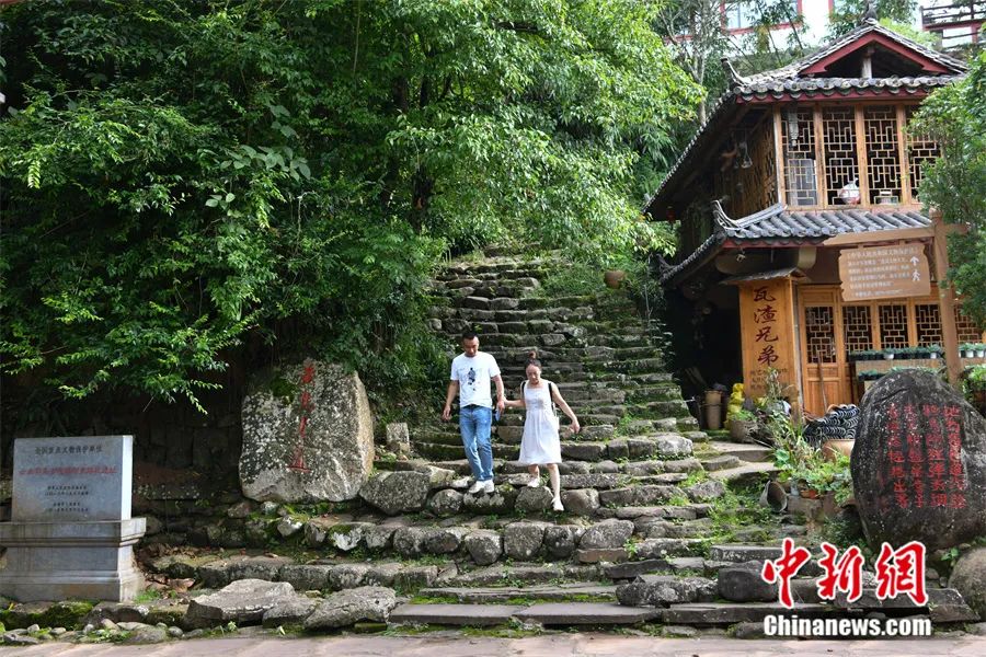 2022年6月,云南省普洱市寧洱縣那柯里村,游客走在茶馬古道遺址上體驗(yàn)。中新社記者 劉冉陽 攝